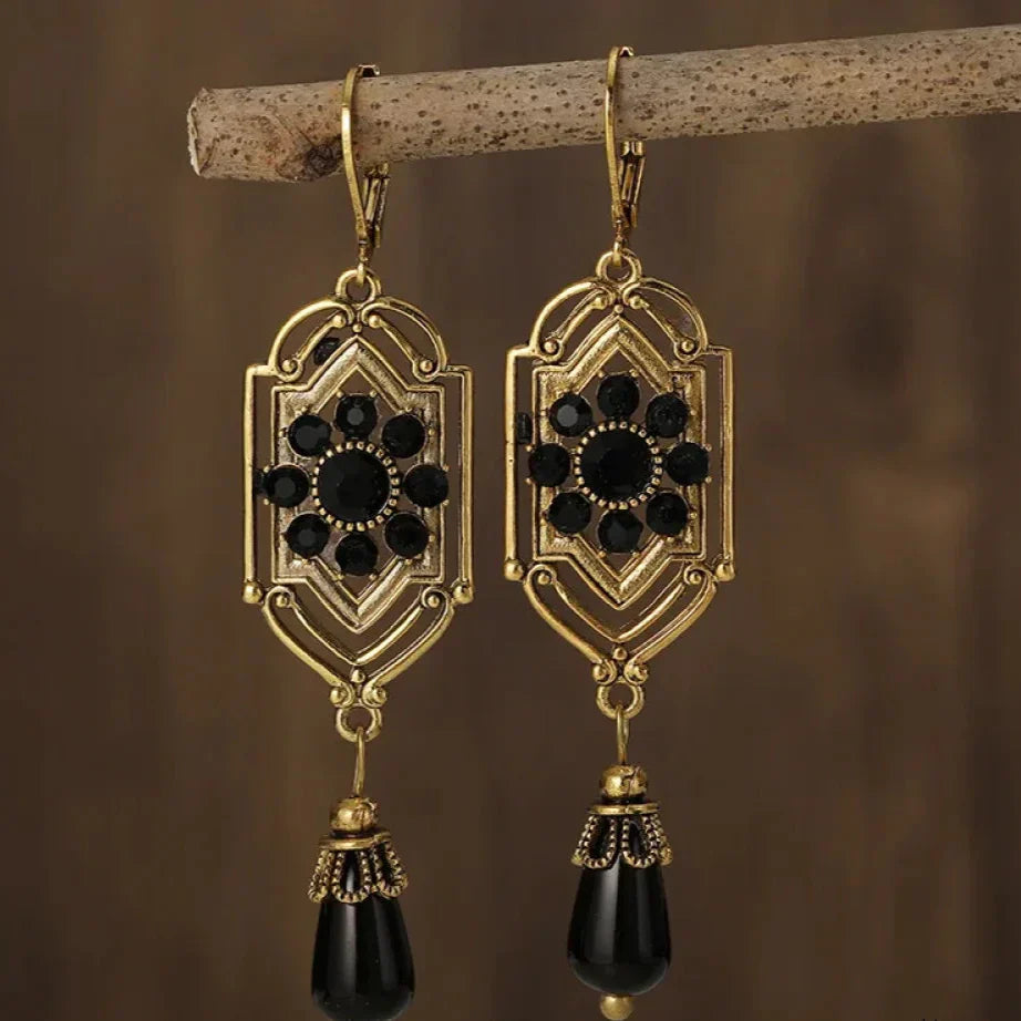Paisleigh – Vintage Black Dangling Crystal Earrings