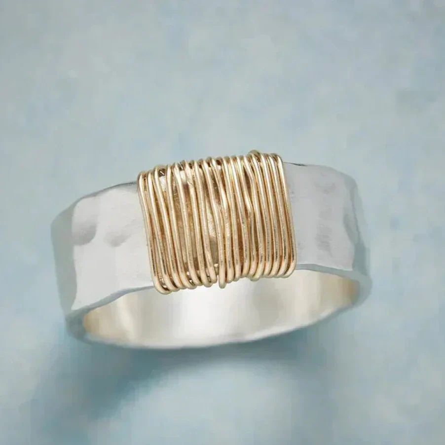Dulce - Vintage Golden Threads Silver Ring